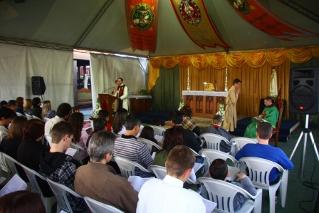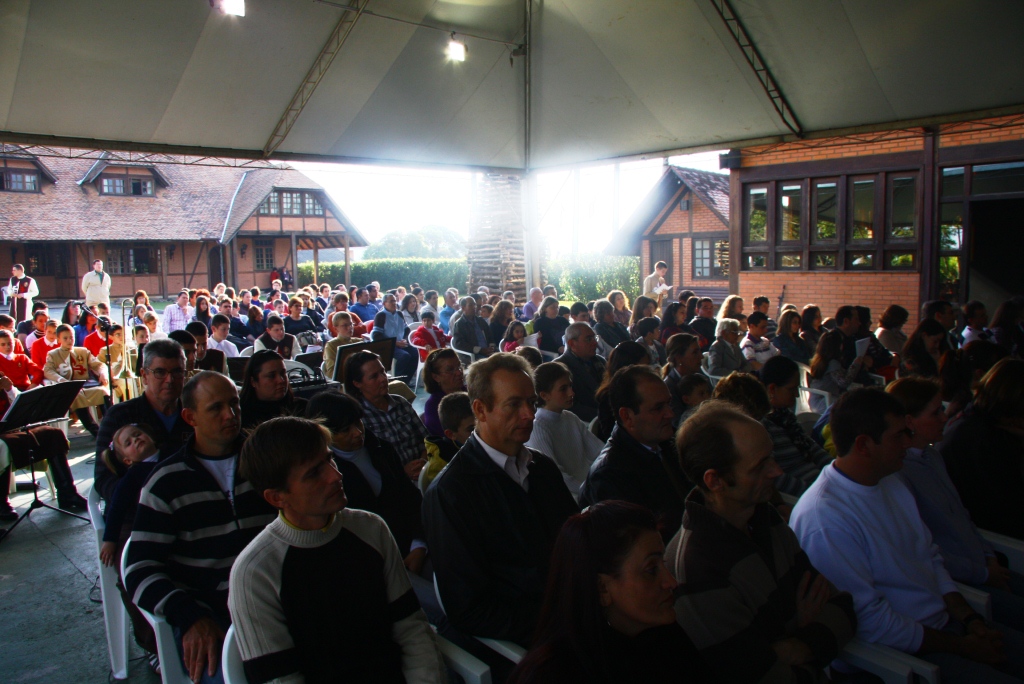 Antes de tudo, como não podia faltar, o Pe. Santiago Canals E.P. celebrou a Santa Missa na qual a banda dos alunos do colégio Arautos animou com os cantos e musicas, inicando assim o clima de festa e de bençãos!