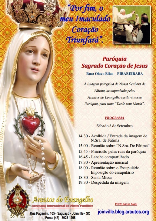 Neste sábado: Tarde com Maria em Pirabeiraba!2 de setembro de 2016Written by Arautos Joinville Deixe um comentário Leia mais