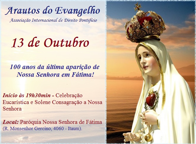 CONVITE: 13 de Outubro – Solene Consagração a Nossa Senhora13 de outubro de 2017Written by Arautos Joinville 2 Comentários Leia mais