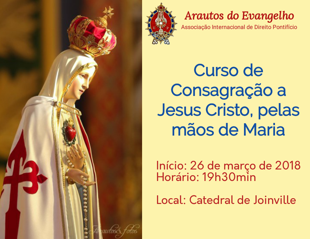 Convite: Curso de Consagração a Jesus Cristo, pelas mãos de Maria24 de março de 2018Written by Arautos Joinville 2 Comentários Leia mais