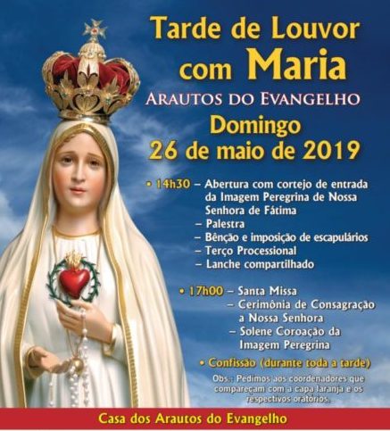 Venha participar da tarde de louvor com Maria!20 de maio de 2019Written by Arautos Joinville 2 Comentários Leia mais