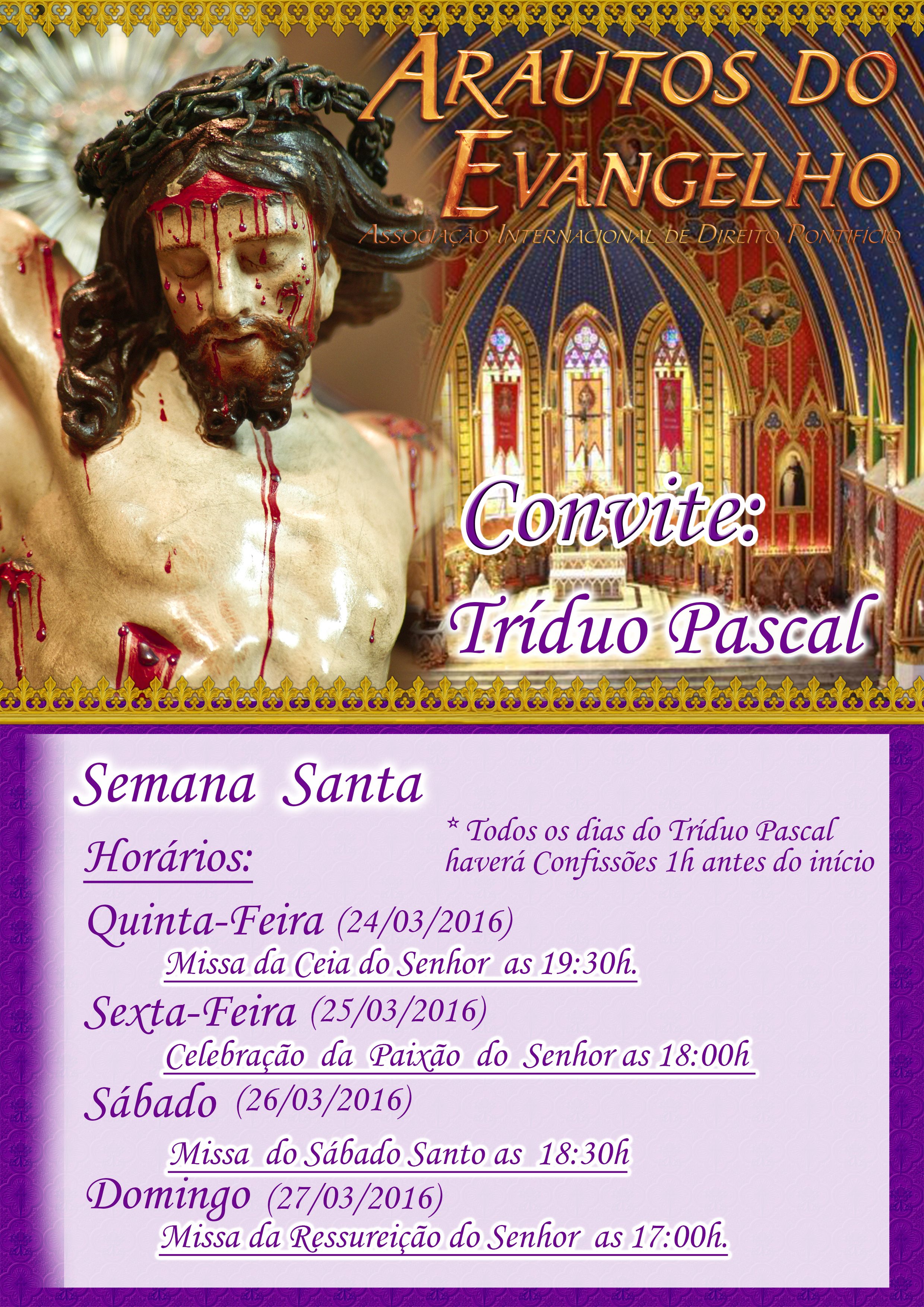 No dia 19 de março, é comemorado pela Santa Igreja a Solenidade de São José. Para melhor celebrar a data, os Arautos do Evangelho de Joinville convidam a todos a participar de uma Missa Solene, acompanhada de uma especial Consagração a São José para todas as famílias! Santa Missa – Solenidade de São José Dia: 19 de março de 2016 […]