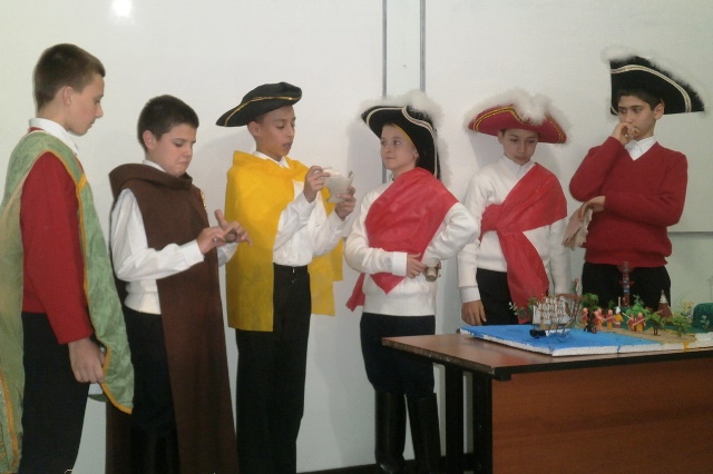 Dentro das diversas atividades realizadas no Colégio Arautos, existe um método didático de aprendizado, em que os alunos se utilizam da encenação e exposição de maquetes, as quais os próprios estudantes confeccionam. Neste semestre, os jovens apresentaram uma peça teatral, a qual fez parte de uma atividade escolar, onde o tema abordado era o descobrimento do Brasil.